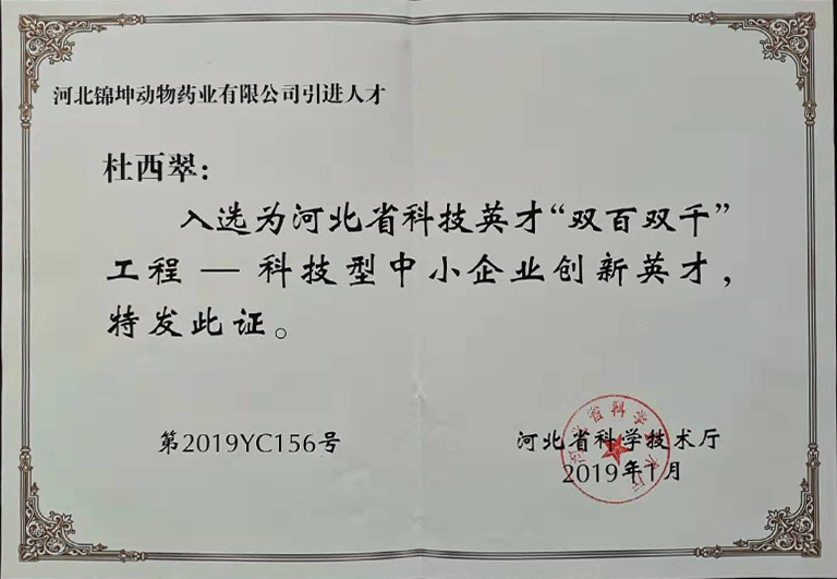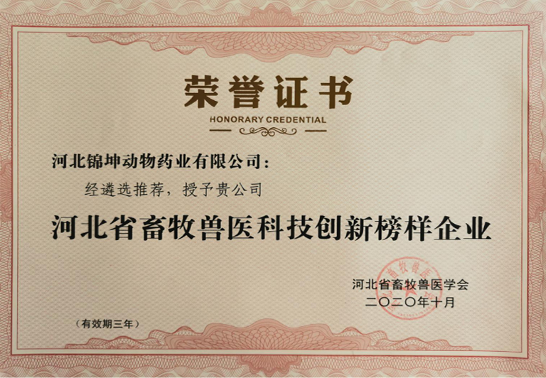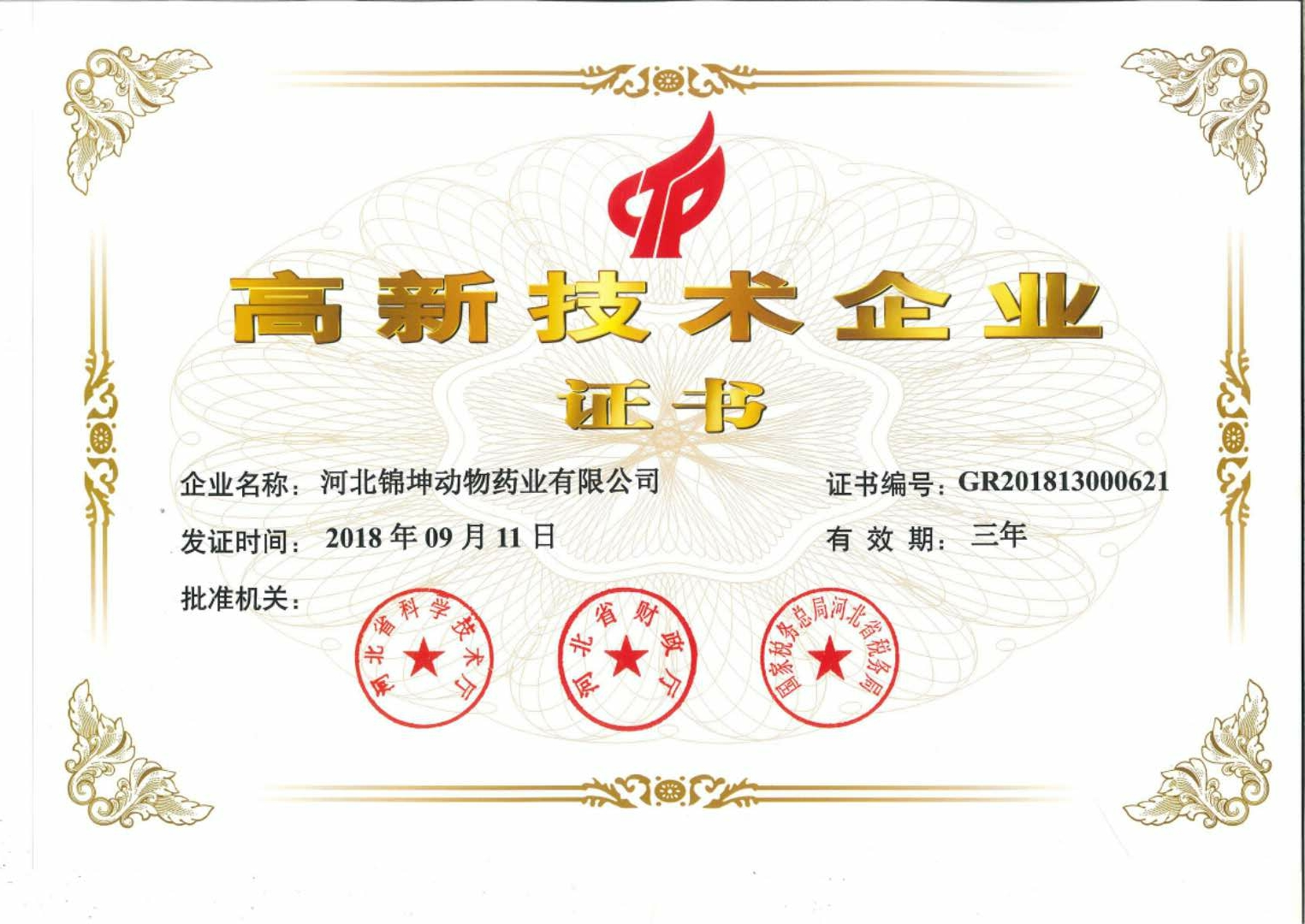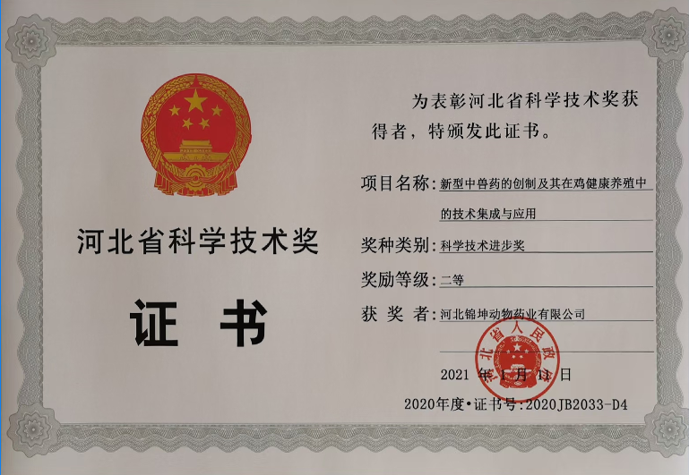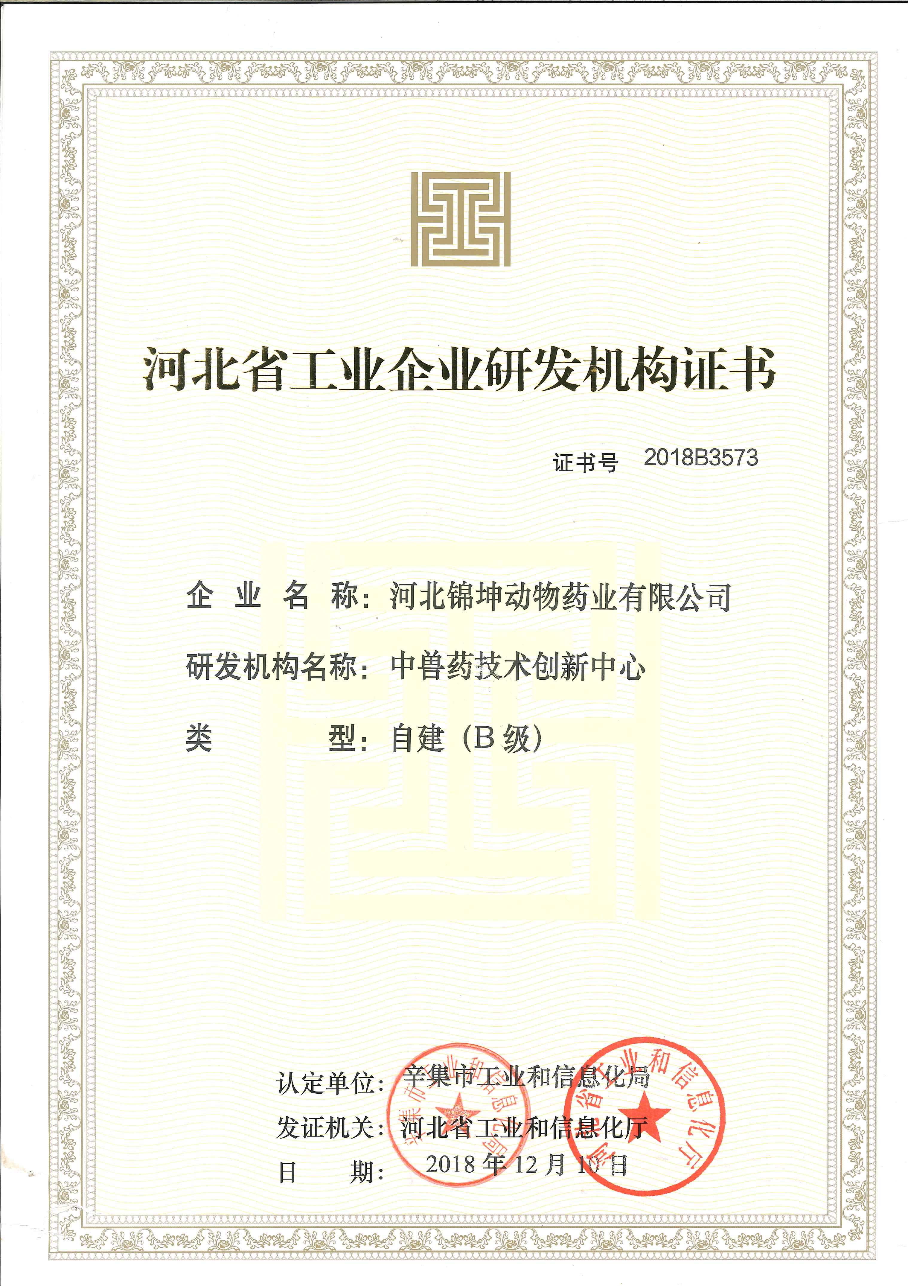 錦坤公司擁有專業的科研技術力量和產品研發能力。自主的研發機構,每年科研投入占產值5%以上。同時與國內各大專業院校建立了長期的合作關系。擁有多項國家級三類新獸藥證書和專利。